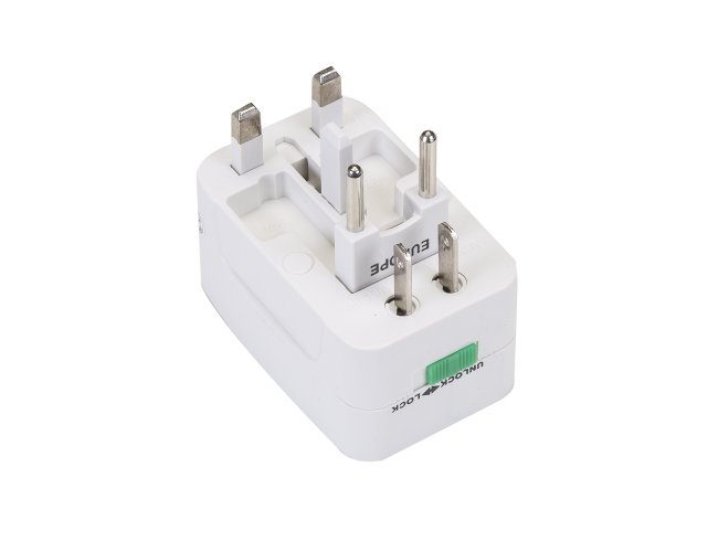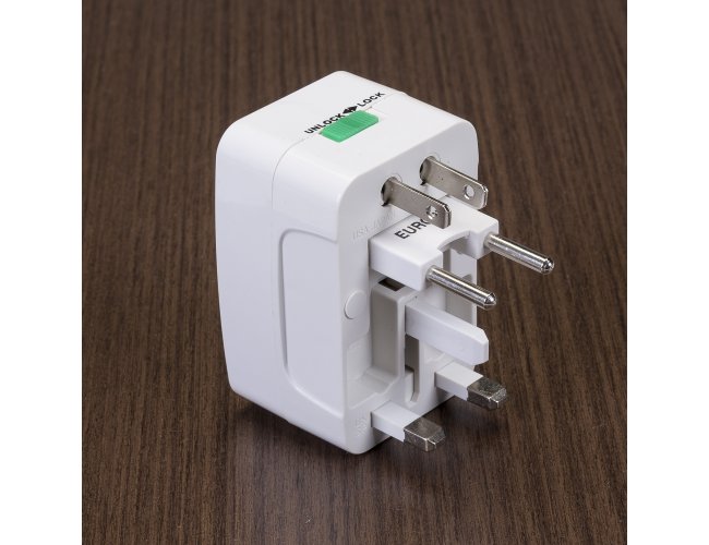 Adaptador universal branco em plástico resistente.Possui plug EUROPE: para uso basta puxar a tomada cental, para guardar empurrar para dentro. Plug UK/SP: empurre o botão verde de lock para unlock e a tomada irá pra fora, para guardar basta empurrar a tomada de volta para dentro e empurre o botão para lock(neste processo é necessário segurar a tomada enquanto trava). Plug USA/JAPAN/AUST/THAI: empurre o botão verde de lock para unlock e a tomada irá pra fora, para guardar basta empurrar a tomada de volta para dentro e empurre o botão para lock(neste processo é necessário segurar a tomada enquanto trava). Parte central basta conectar algum dispositivo e utilizar as outras tomadas para conectar à energia. Quando o adaptador estiver com a luz vermelha acesa significa que está funcionando.