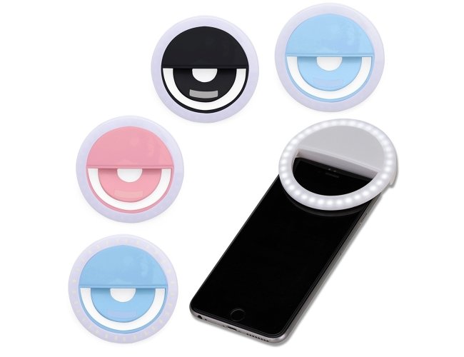 Melhore a qualidade das selfies e registre momentos únicos com mais luz e brilho! Nosso Anel de iluminação para celular, é um ?Ring light? plástico, mais compacto, e no formato ?presilha? para encaixe. Ainda possui três estágios de iluminação acionados pelo botão superior. Acompanha cabo USB para carregamento.