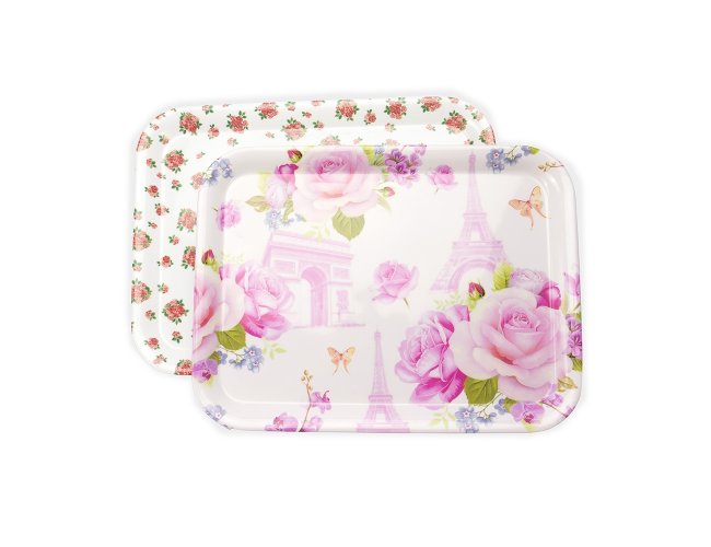 Bandeja retangular feito em melamina, material conhecido por sua resistência a impactos e facilidade de limpeza.