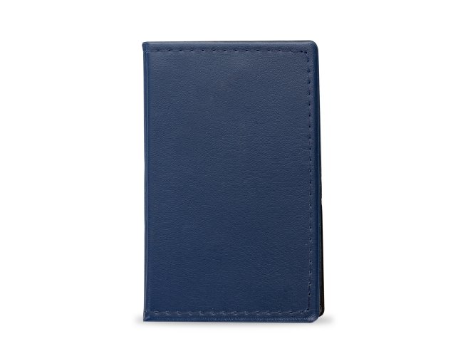 Bloco de anotações em couro sintético com autoadesivos, frente e verso liso. Possui cinco blocos coloridos autoadesivos com aproximadamente 25 folhas e bloco amarelo com aproximadamente 30 folhas.