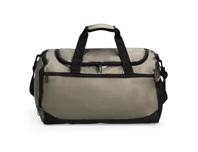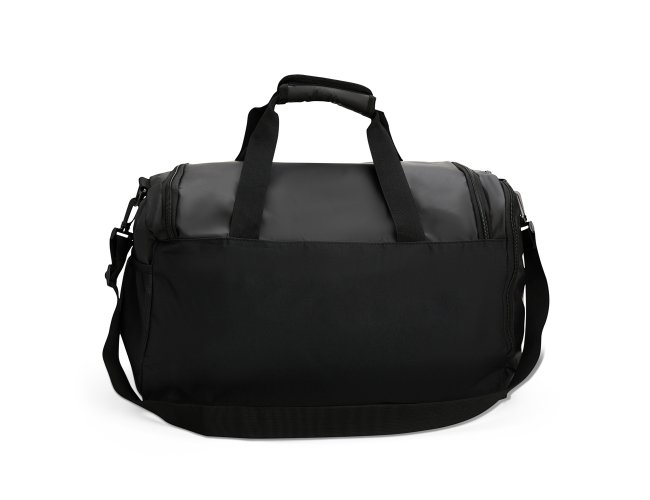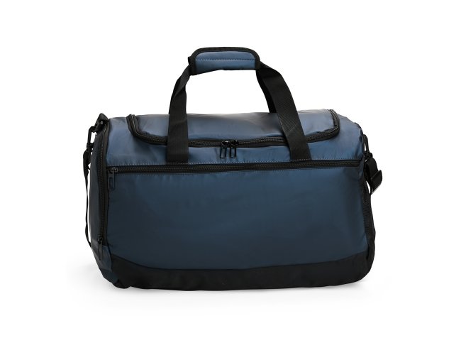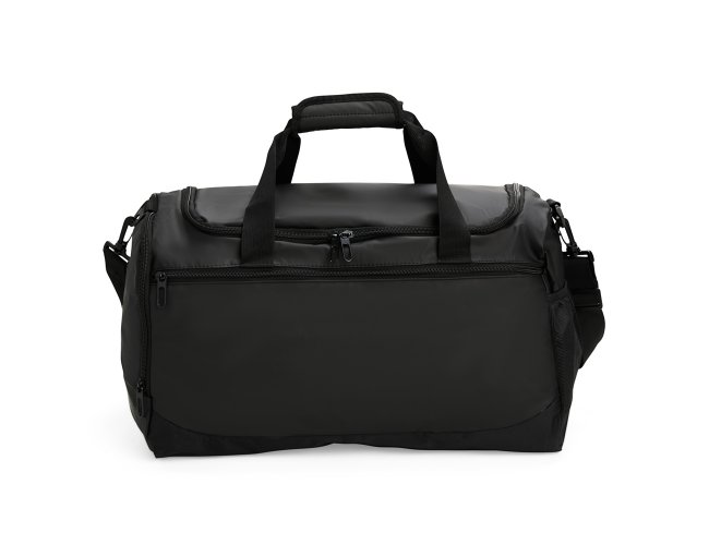 Bolsa em couro sintético impermeável, com detalhes em malha e capacidade de até 36 litros. Apresenta três compartimentos em diferentes tamanhos, incluindo espaço tênis, além de bolso lateral em tela de nylon com elástico. Possui duas alças de mão com suporte de velcro e alça transversal.