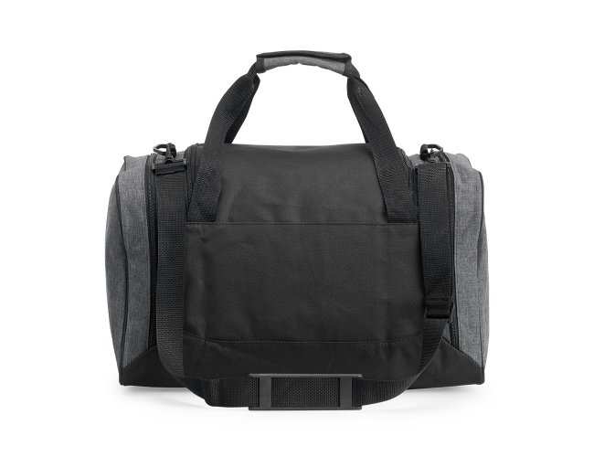 Bolsa de 46 litros confeccionada em nylon resistente à água, com quatro compartimentos, incluindo um bolso lateral com parte telada exclusivo para tênis. Possui alça transversal regulável e removível, além de duas alças de mão.