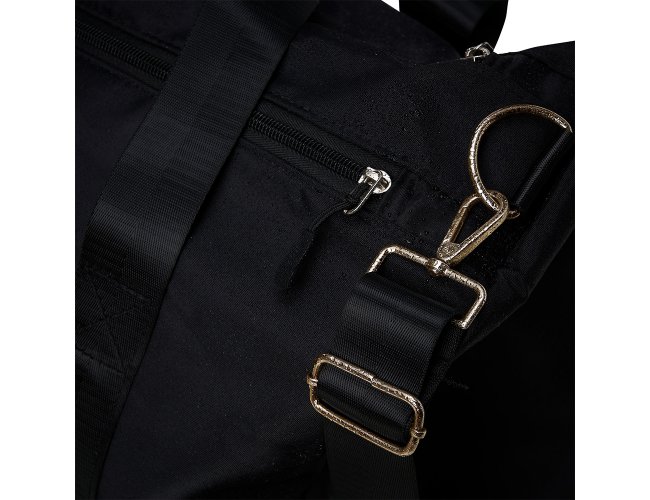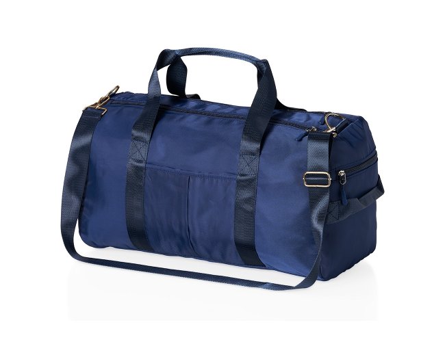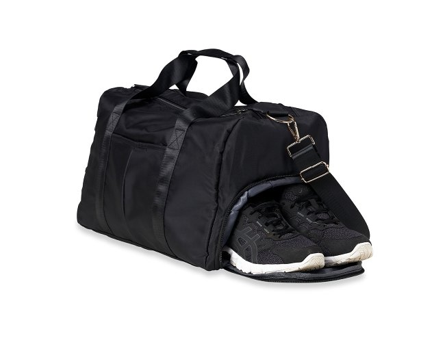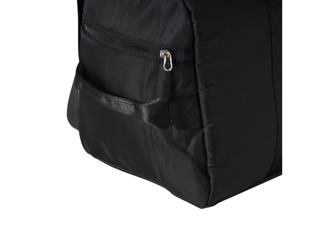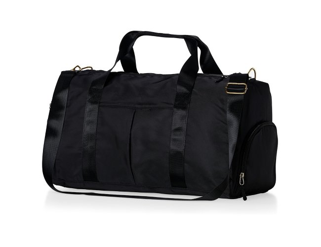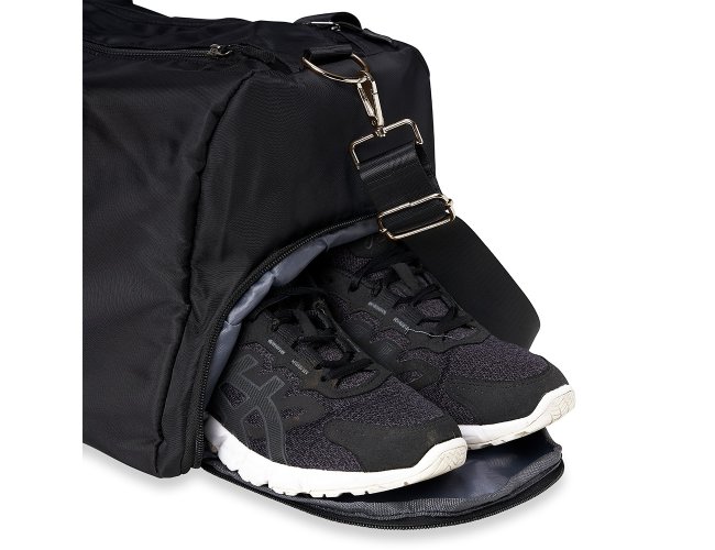 Contém bolso para encaixe em malas de viagem, bolso interno, alça de mão lateral extra e acompanha alça transversal. Bolsa esportiva de 36 litros em poliéster resistente à água com cinco compartimentos, sendo dois deles exclusivos para tênis e itens molhados.