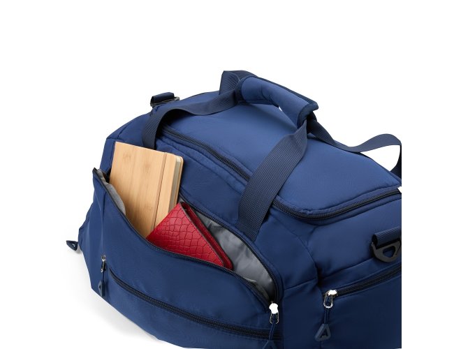 Esta é uma bolsa esportiva que traz a combinação de versatilidade e praticidade em um design destacado. Feita em Oxford resistente à água e com capacidade de 42 litros, ela conta com espaço de sobra para armazenar trajes e equipamentos esportivos graças aos seus 4 compartimentos principais amplos, incluindo um bolso lateral mais espaçoso para carregar objetos à parte de outros itens, como calçados ou roupas molhadas. Além disso, a bolsa pode ser transportada de três formas diferentes: pela horizontal e com as mãos através do par de alças reforçadas com uma liga com fechamento em velcro para junção, também pela horizontal, com os ombros, adicionando a alça transversal removível ou ainda na vertical ao montar as alças para as costas localizadas na parte traseira, transformando-a em uma mochila convencional, com o bolso amplo da lateral ocupando o papel de abertura principal.