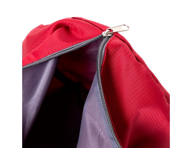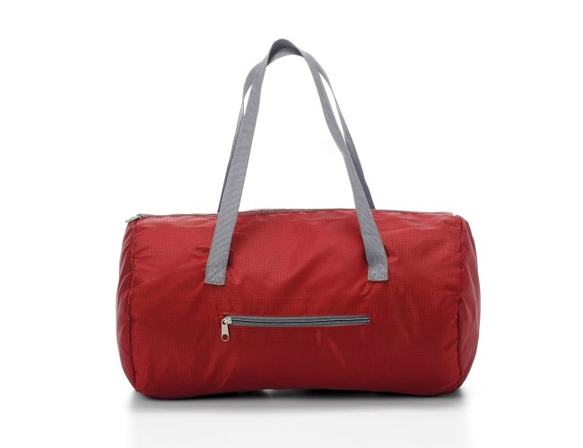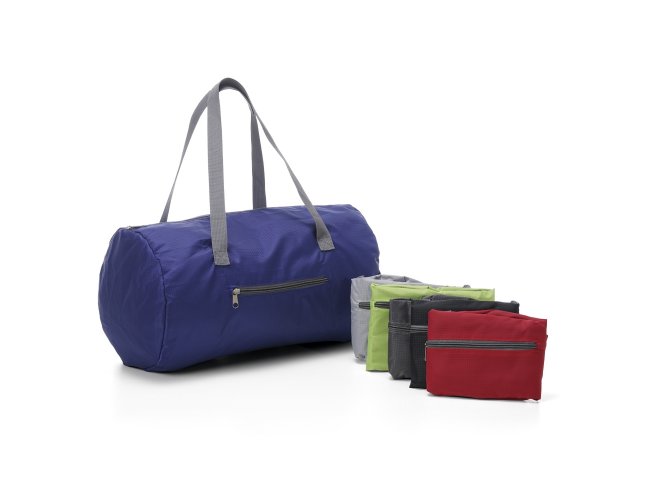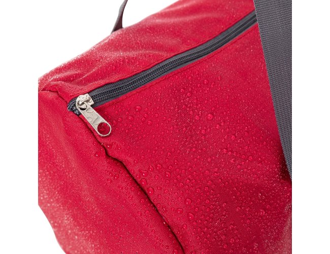 Bolsa esportiva de 22 litros em poliéster impermeável com dois compartimentos.