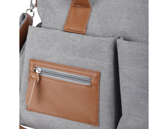Nossa bolsa multifuncional de 17 litros foi pensada para atender diferentes necessidades do dia a dia. Feita em poliéster com tecido resistente à água, ela traz detalhes em couro sintético que dão um toque moderno e sofisticado. Por dentro, é totalmente forrada em nylon e tem um espaço amplo com quatro bolsos, facilitando a organização de tudo o que for necessário. O fechamento principal é por zíper, com um charmoso detalhe em couro sintético. Já na parte externa, são seis bolsos ao todo: um com fechamento em zíper e detalhe em couro sintético, dois nas laterais e outros três com botão de ímã, garantindo praticidade e segurança para pequenos objetos. Para maior conforto, as alças permitem o uso tanto no ombro quanto nas mãos. E para quem precisa de ainda mais versatilidade, a bolsa conta com uma alça extra produzida em poliéster e detalhe em couro sintético ajustável e removível, além de um suporte, perfeito para prender em carrinhos de bebê, supermercado ou onde desejar. Essa bolsa é uma excelente opção de brinde, unindo modernidade e praticidade.