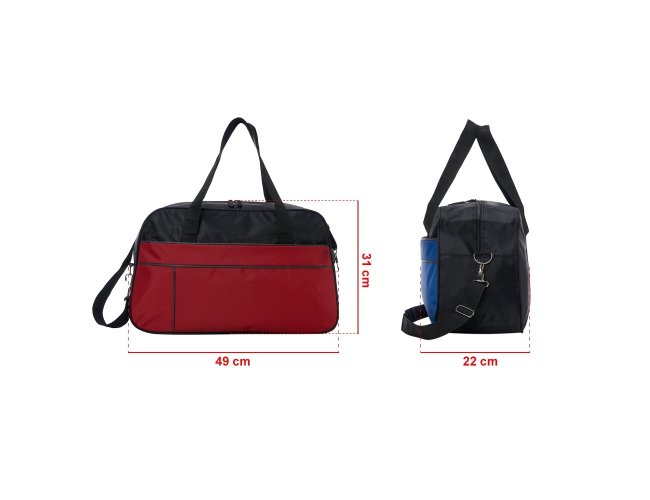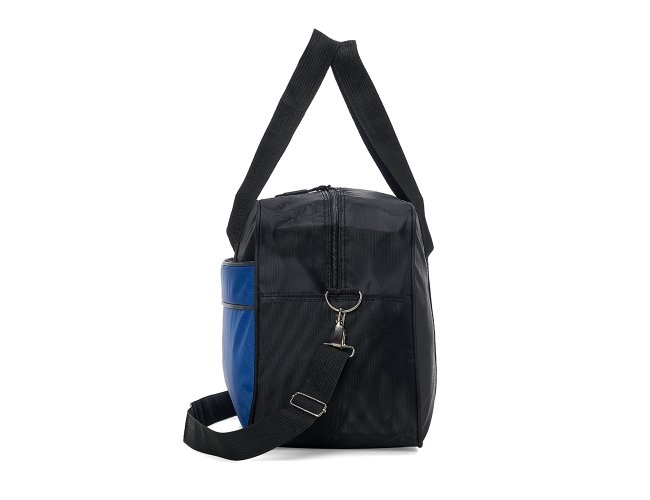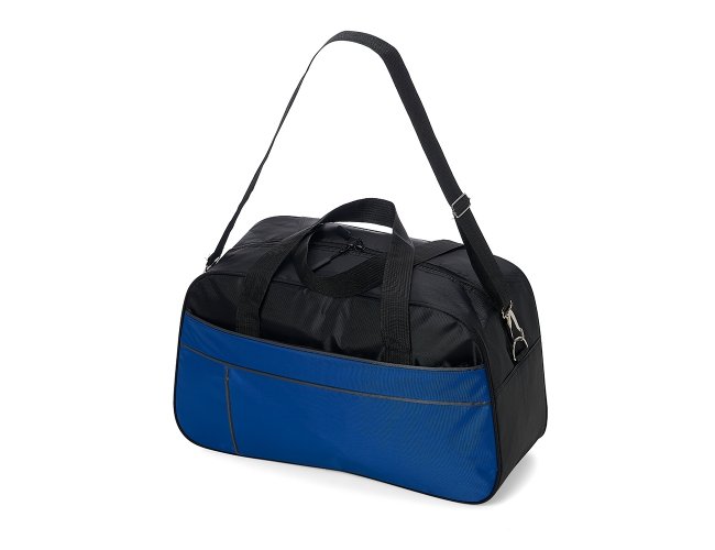 Bolsa esportiva de 38 litros em poliéster resistente à água com dois compartimentos. Contém bolso interno e acompanha alça transversal.