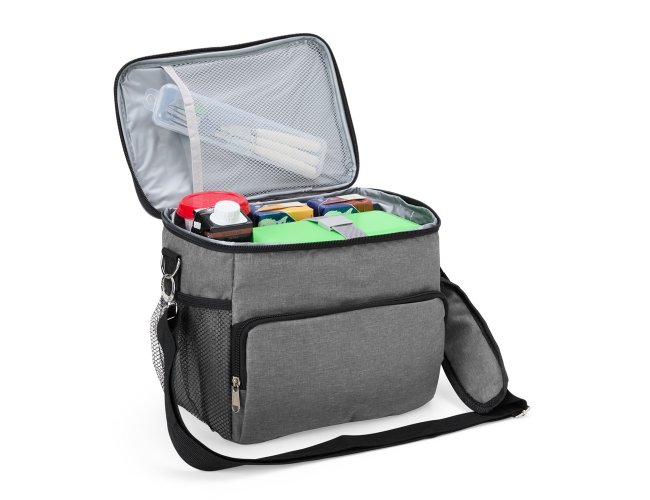 Leve praticidade e estilo para seu dia com esta incrível bolsa térmica de poliéster! Com dois compartimentos + um bolso telado internamente, ela oferece a capacidade perfeita para manter suas refeições e bebidas fresquinhas onde quer que você vá. O revestimento térmico em PEVA atóxico, com costura soldada, garante um isolamento impecável e à prova de vazamentos. Equipada com alça de mão e alça transversal ajustável e removível, essa bolsa é versátil e confortável para qualquer ocasião. Os bolsos laterais telados completam o design, oferecendo ainda mais espaço para os pequenos itens essenciais. Ideal para quem busca praticidade sem abrir mão do charme!