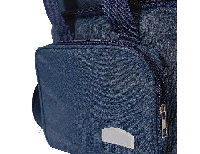 Bolsa térmica em Oxford resistente à água e capacidade máxima de 15 litros. Possui revestimento interno em PEVA, ideal para conservar a temperatura de alimentos e bebidas por mais tempo. Sua tampa apresenta revestimento térmico em folha de alumínio. Além disso, possui compartimento frontal externo e mais dois bolsos laterais em tela de nylon com elástico. Apresenta alças de mão com suporte de juntura e alça transversal removível.
