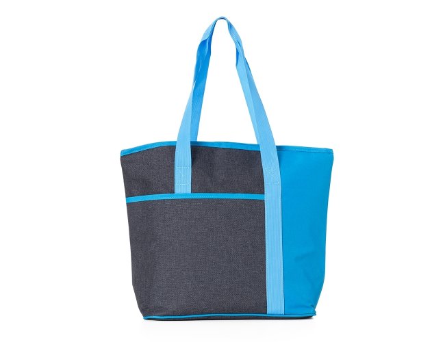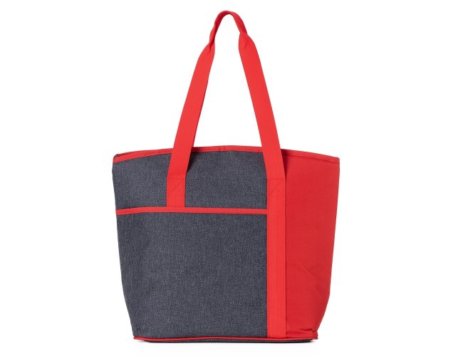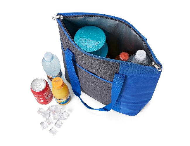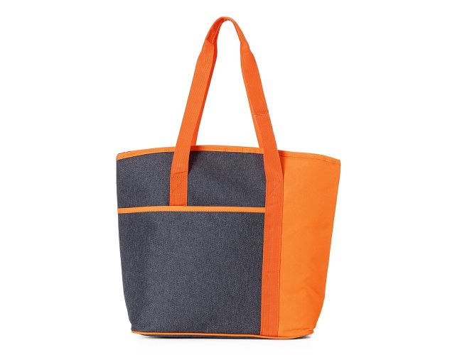 Sacola térmica de poliéster 900D+300D de 15 litros com bolso frontal. Compartimento principal com revestimento peva.