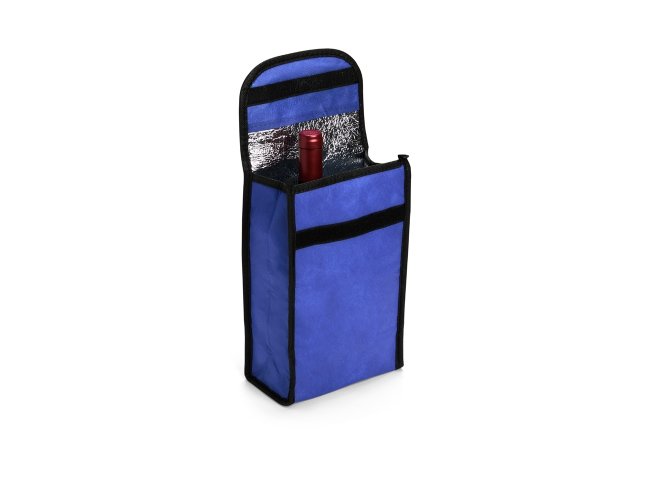 Bolsa térmica confeccionada em rPET impermeável, com capacidade máxima de 4 litros, revestimento térmico em folha de alumínio e alça de mão em nylon.
