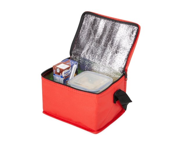 Bolsa térmica em TNT impermeável, fechamento em zíper e capacidade máxima para até 5 litros. Possui revestimento térmico em alumínio e alça fixa em nylon.