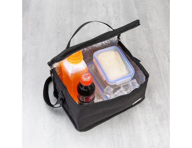 Bolsa térmica de nylon 6 litros com plaquinha metálica fixa.