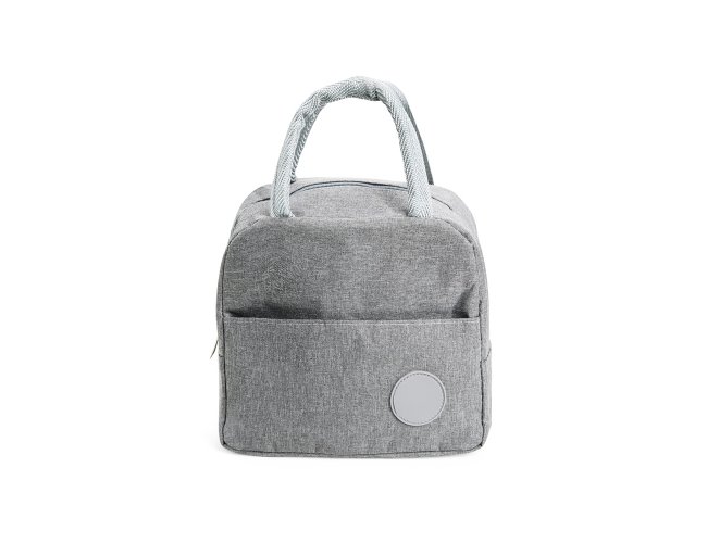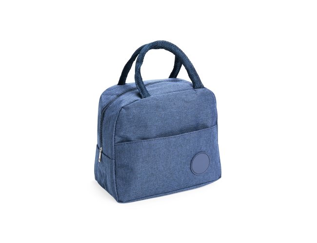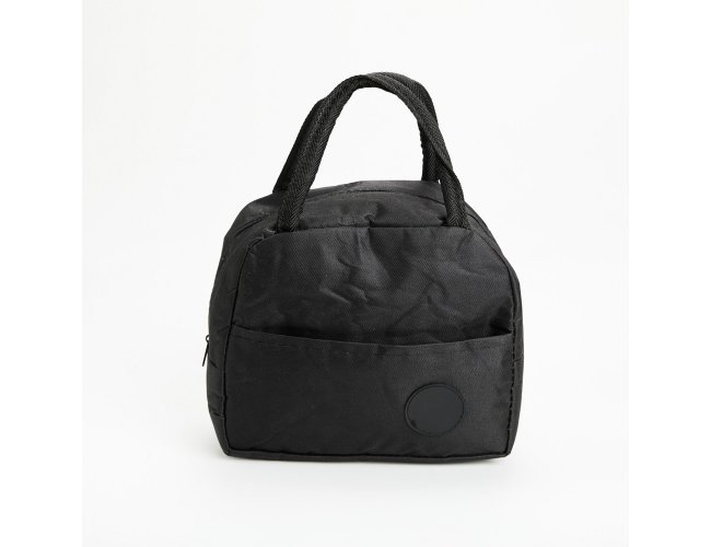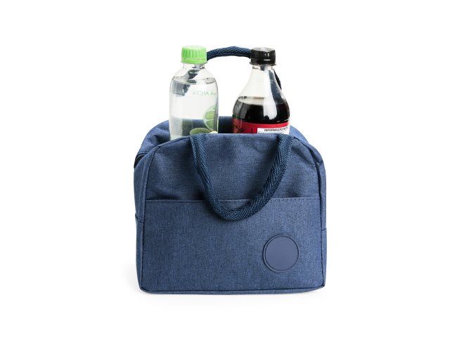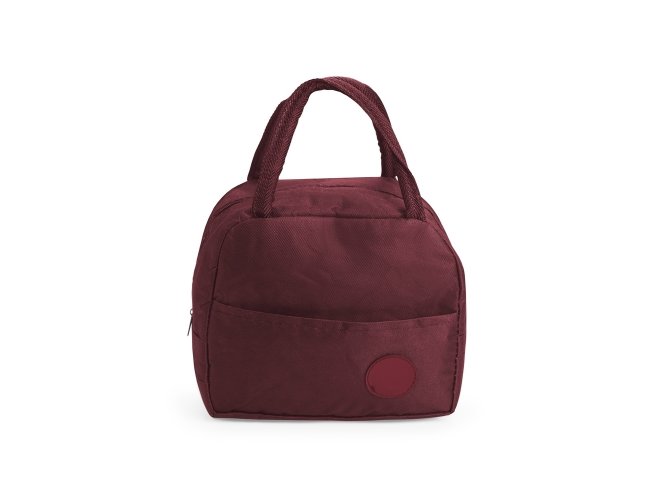 Bolsa térmica feita em poliéster resistente à água e capacidade de até 6 litros. Possui revestimento interno em folha de alumínio, além de bolso frontal com plaquinha fixa em plástico e par de alças de nylon para transporte.