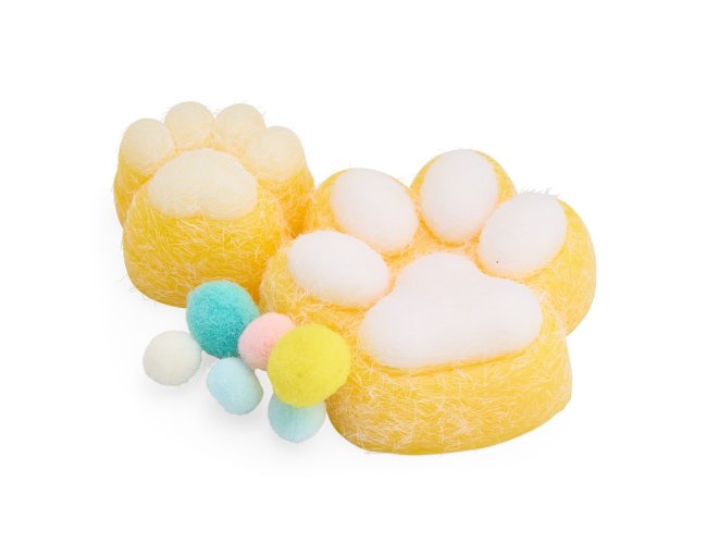 Brinquedo apertável antiestresse em formato de pata estilizada. Cada embalagem contém duas unidades em tamanhos diferentes. Produzido em borracha termoplástica de textura lisa e macia, que adere facilmente a superfícies planas. Acompanha bolinhas decorativas em pelúcia.