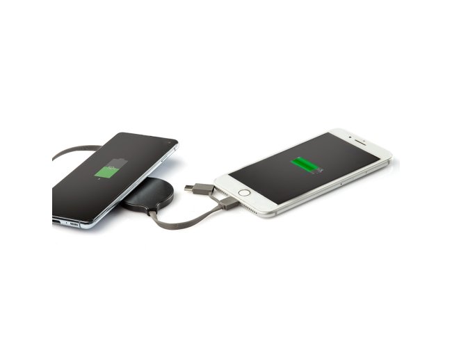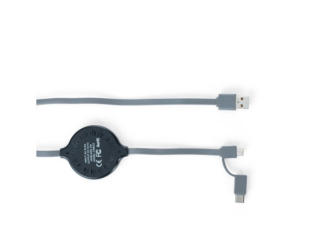 Cabo de indução 3 em 1, contém as entradas tipo-C, lightining (iOS), V8 (android) e carregamento por indução.