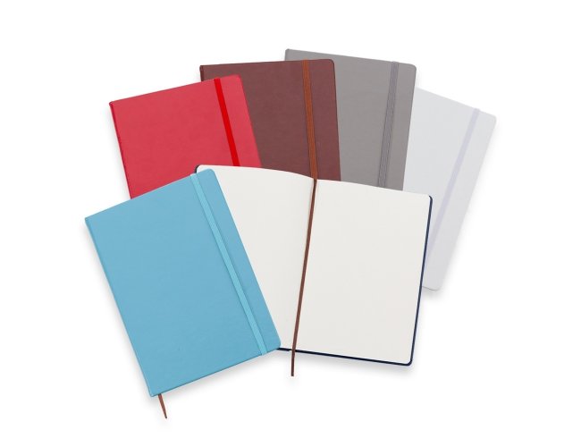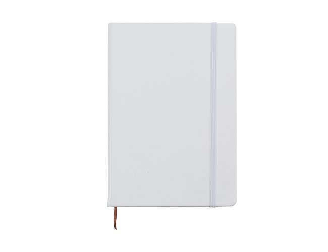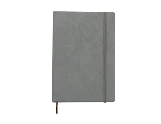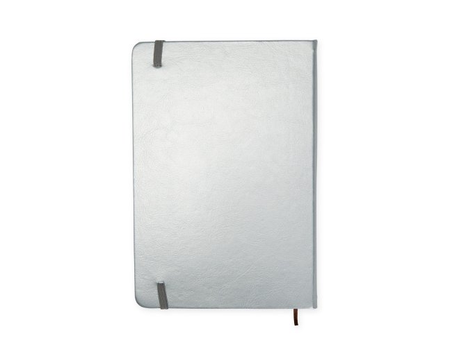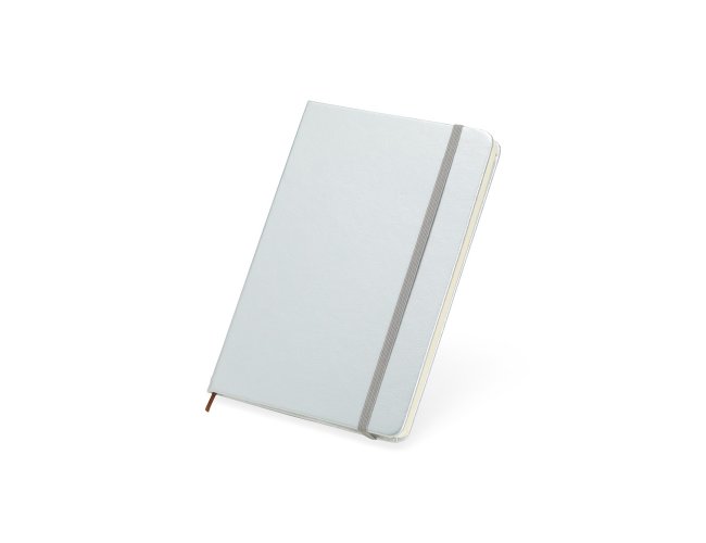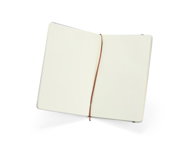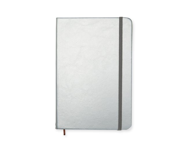 Caderneta de couro sintético, marcador de página em cetim e fita elástica para fechar. Contém aproximadamente 78 folhas amareladas sem pauta.
