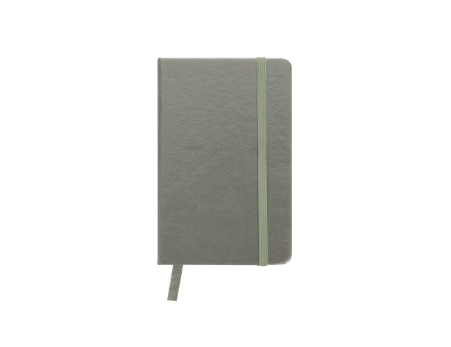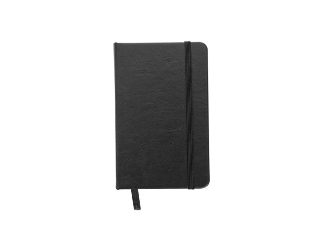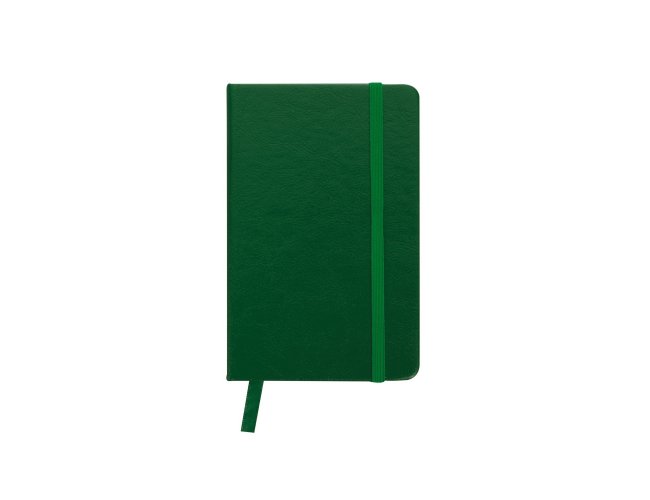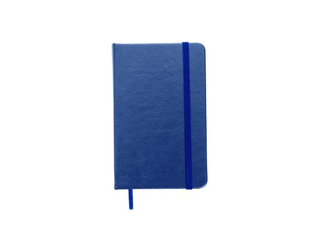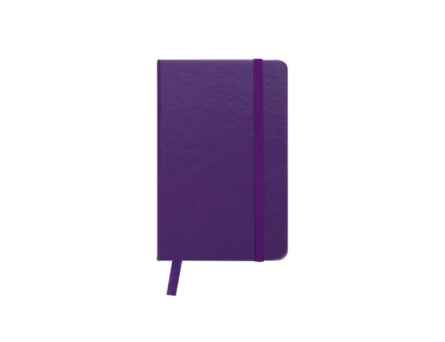 Caderneta de couro sintético com elástico para lacre e marcador de página em cetim, contém 80 folhas pautadas.