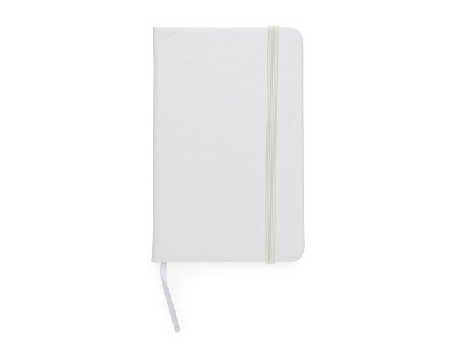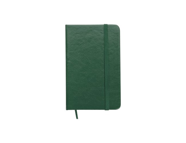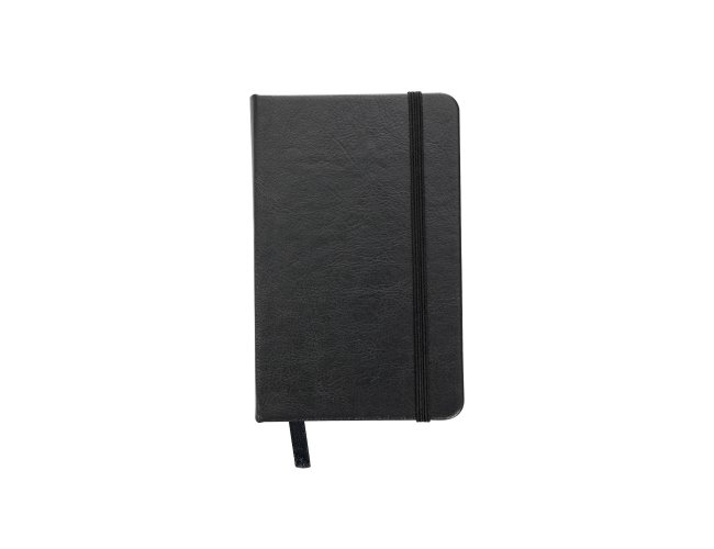 Caderneta de couro sintético com elástico para lacre e marcador de página em cetim, contém 80 folhas sem pauta.