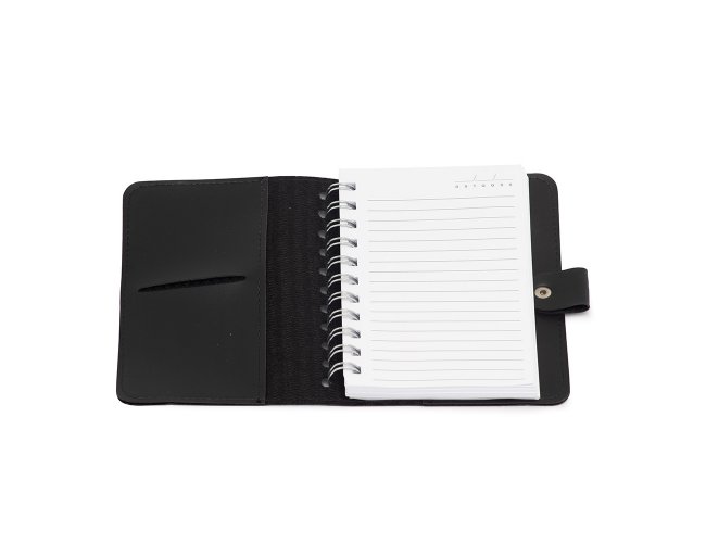 Feita para registrar ideias, pensamentos, tarefas e compromissos, nossa Caderneta Flexível em couro combina elegância e funcionalidade. Com aproximadamente 95 folhas brancas pautadas, ela é ideal para anotações, esboços e reflexões. Além disso, a caderneta possui bolsos internos para cartões e documentos e um elástico para lacre, garantindo que tudo fique seguro e organizado.