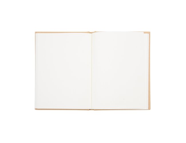 Caderneta ecológica, material em kraft. Frente e verso liso com fita elástica para fechar. Contém aproximadamente 80 folhas amareladas sem pauta.