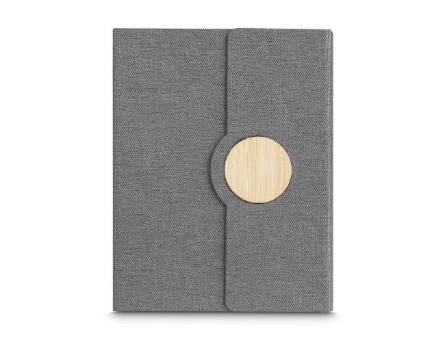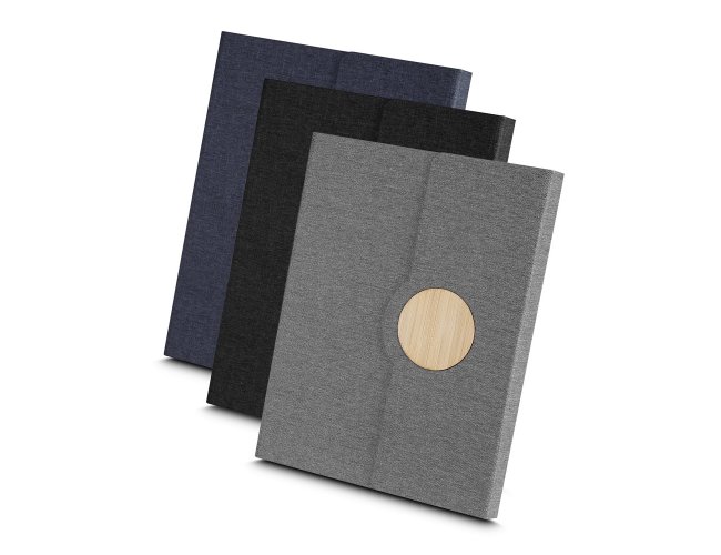 Nosso caderno de anotações é o brinde ideal para quem busca uma opção corporativa sustentável. Com capa em tecido rPET com detalhe em bambu e fechamento imantado, ele alia praticidade e consciência ambiental. Seu miolo conta com 80 folhas pautadas, e a parte interna possui um suporte para caneta, além de um marcador de página em cetim. Um brinde promocional perfeito para deixar uma impressão duradoura, oferecendo funcionalidade para as anotações.