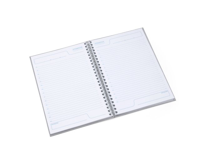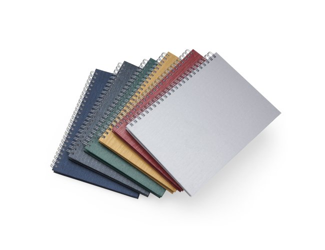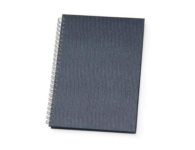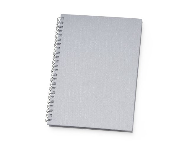 Caderno pequeno percalux com pintura metalizada e wire-o prata. Miolo permanente e folhas para preenchimento de dados pessoais e comerciais. OBS.: PEDIDOS APENAS MÚLTIPLOS DE 10 PEÇAS!