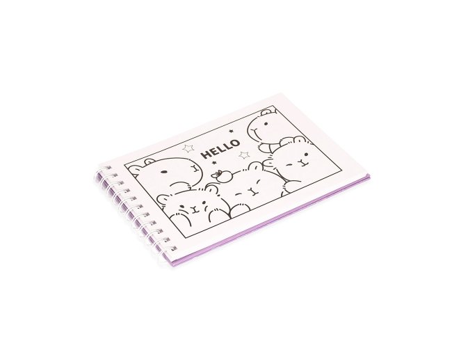 Caderno de colorir de capa dura com laminação holográfica e encadernação Wire-O. Possui aproximadamente 48 folhas contendo ilustrações de capivara e outros animais em situações leves e divertidas. Acompanha uma folha protetora destacável em acetato.