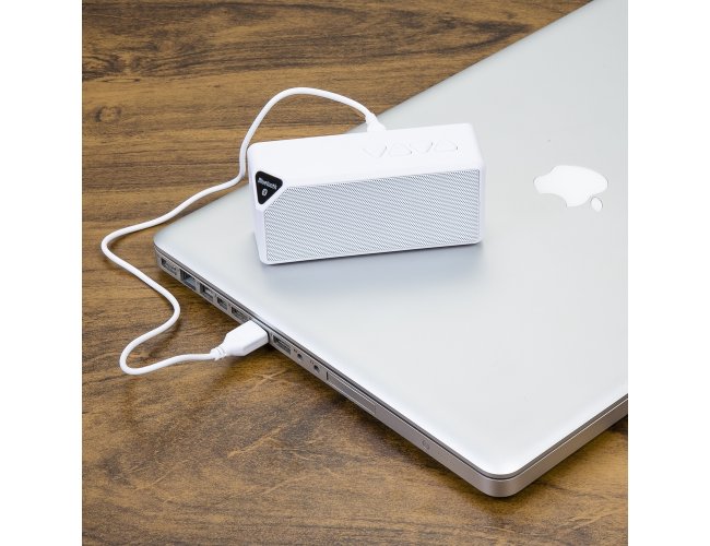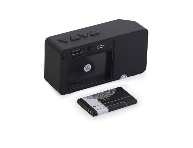 Caixa de som multimídia, rádio FM, alto falante, bluetooth, entrada USB, entrada micro SD, função atende chamadas, possui acabamento emborrachado, e microfone integrado para chamadas de 10 a 15 metros.