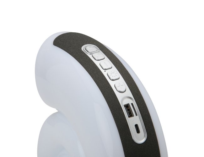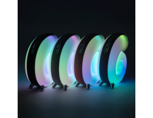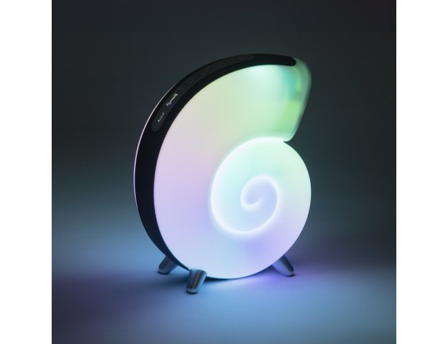 Caixa de som multimídia TWS formato concha com luminária RGB. Qualidade sonora e conectividade total: compatível com bluetooth, rádio FM, cartão TF (MicroSD) e pen drive. Iluminação relaxante e dinâmica, são 7 modos de iluminação RGB com uma vasta gama de movimentos e tonalidades. Sua tecnologia TWS permite sincronizar duas caixas de som em uma, criando uma experiência imersiva compotência excepcional. Fabricada em plástico ABS e PC, seu design exclusivo possui uma faixa de poliéster e pés antideslizantes para maior estabilidade em qualquer superfície. Acompanha cabo USB Tipo-C.