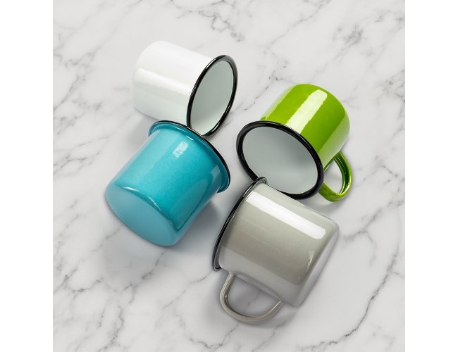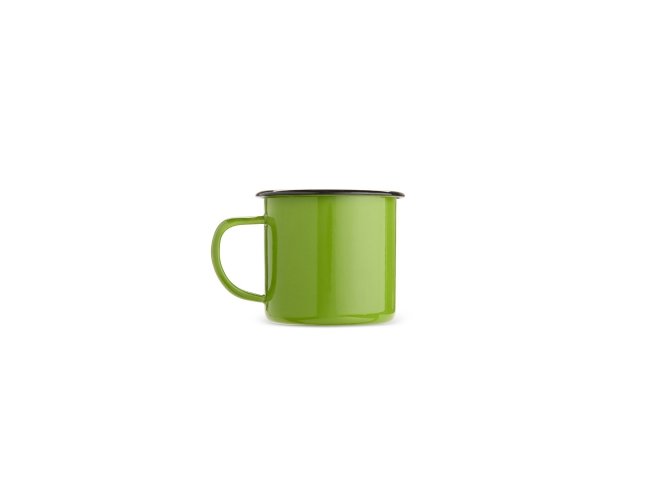 Caneca em inox com pintura totalmente esmaltada e capacidade para até 370ml.