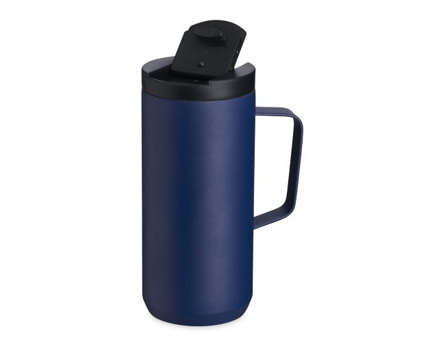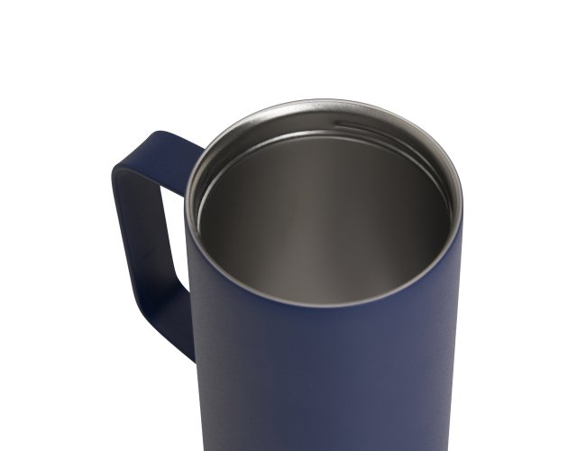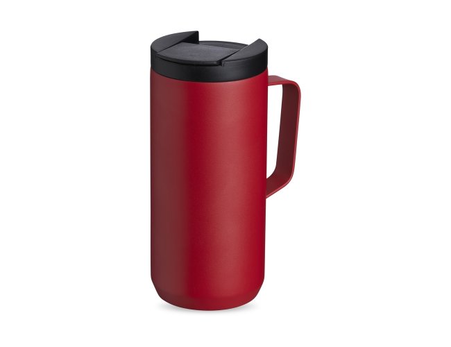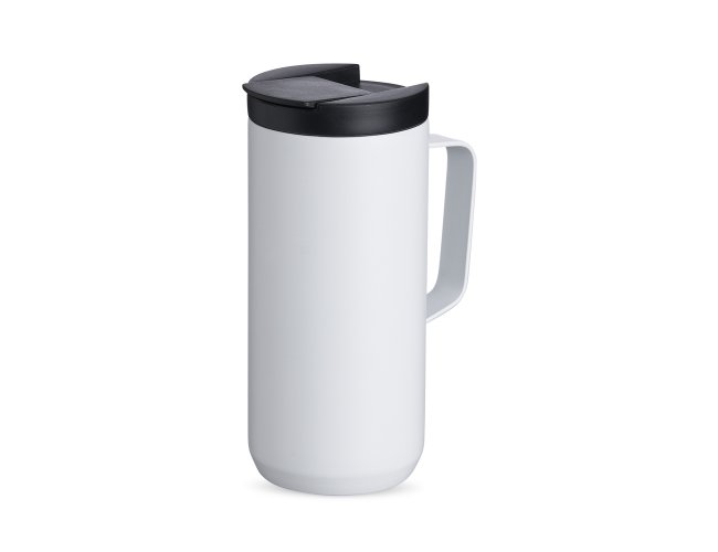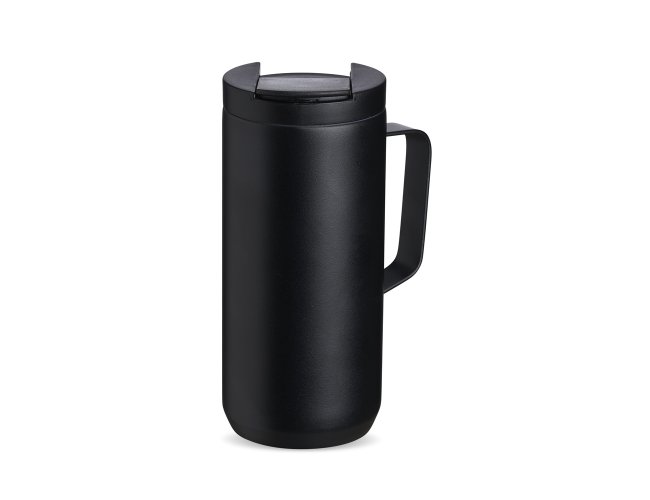 Caneca térmica de inox em parede dupla livre de BPA, capacidade de 350ml. Contém base antiderrapante e tampa plástica com bocal e trava de segurança.