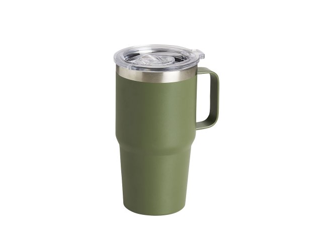 Caneca térmica de Inox com capacidade para 700ml. Acompanha uma tampa de plástico transparente .