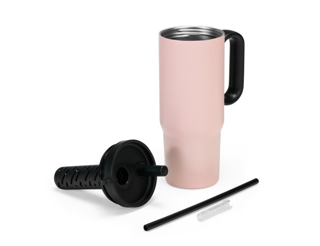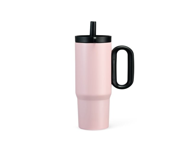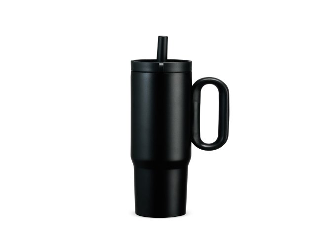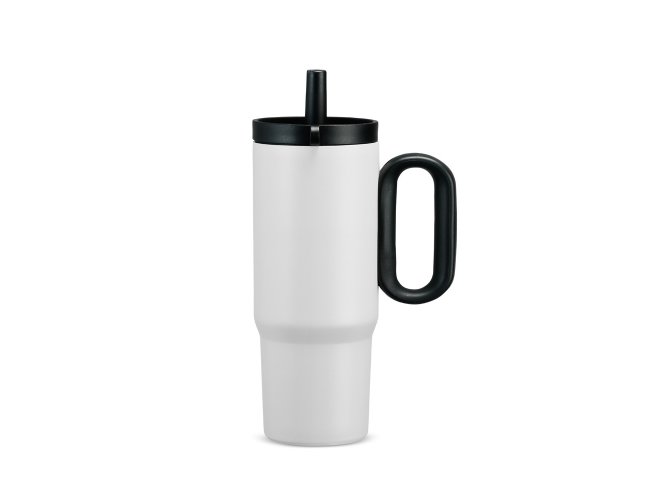 Caneca térmica em inox 304 com pintura eletrostática, alça lateral em plástico e capacidade de até 750ml. Conta com estrutura de parede dupla e vedação a vácuo para manter a temperatura de líquidos por mais tempo. Possui tampa plástica rosqueável com acesso para canudo, infusor removível e alça para fixação de chaveiro ou gancho. Acompanha canudo plástico para encaixe.