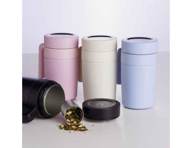Caneca Térmica inox 500ml com infusor, e display LED com termômetro digital na tampa para indicar a temperatura do líquido.