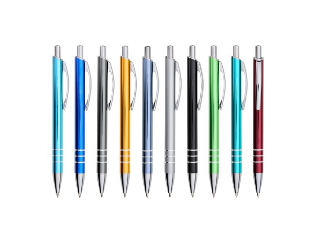 Caneta metálica, acionamento por clique e carga esferográfica azul 1.0mm.