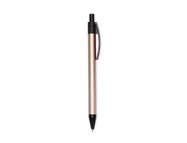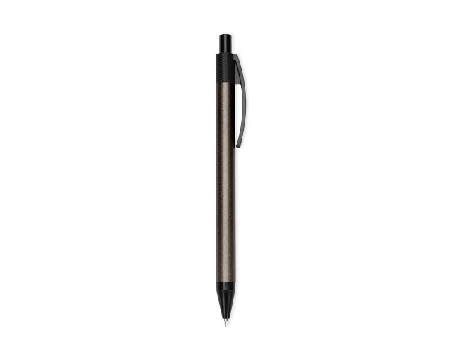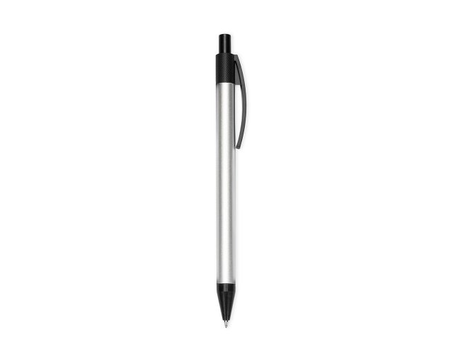 Caneta de corpo metálico, ponteira e clip em plástico e acionamento por clique. Possui carga esferográfica azul de 1.0mm, proporcionando uma pegada leve para uma escrita precisa.