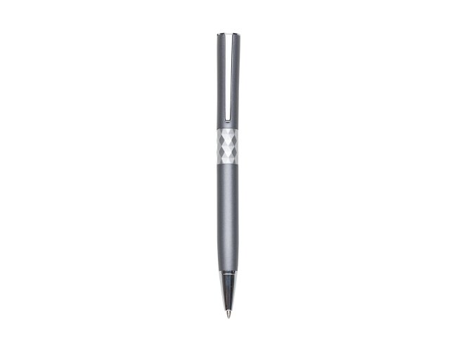 Caneta metálica com carga esferográfica azul e acionamento por rotação. OBS.: PEDIDO APENAS MÚLTIPLO DE 50 PEÇAS!