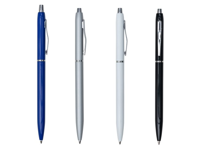 Caneta metálica com carga esferográfica azul e acionamento por clique. OBS.: PEDIDO APENAS MÚLTIPLO DE 100 PEÇAS!