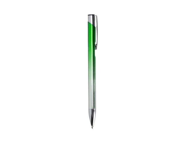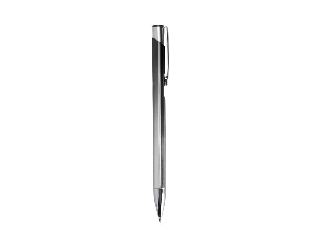 Caneta metálica bicolor com carga esferográfica azul 1.00mm e acionamento por clique.