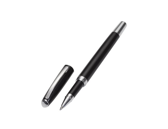 Caneta metal com tampa, carga rollerball azul.