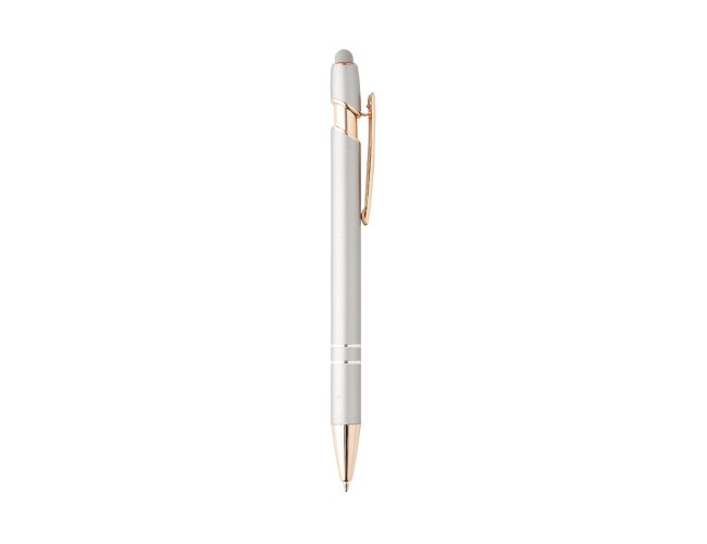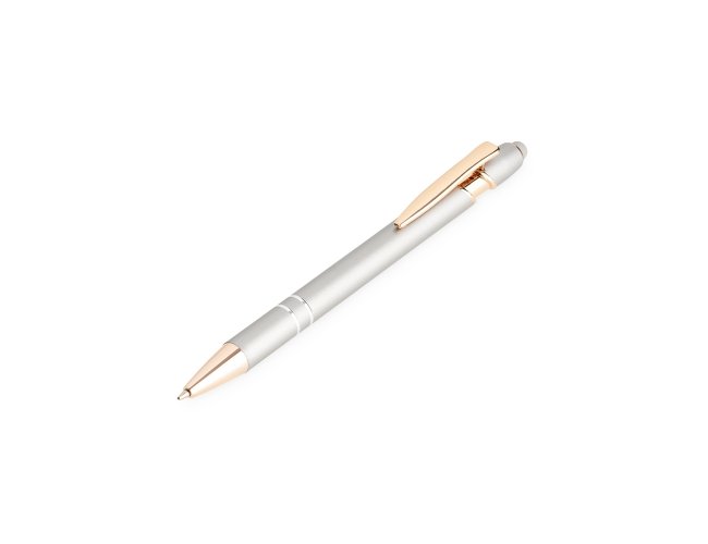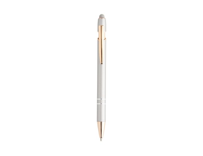 Caneta metálica touchscreen com acionamento por clique, carga esferográfica azul 1.0mm.