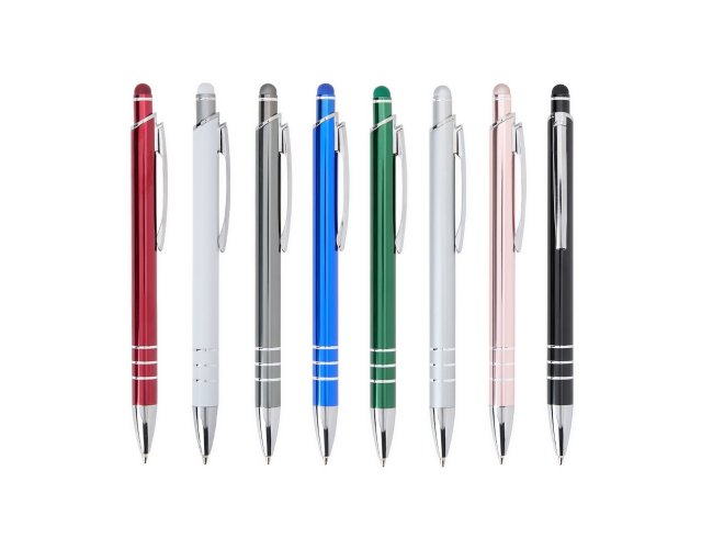 • Acionamento por Clique • Carga Azul • Escrita 1.0mm • METÁLICAS • Multifunções • Touch