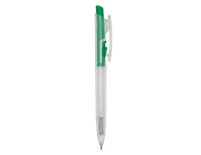 Caneta plástica com carga esferográfica azul 1.2 mm e acionamento por clique.