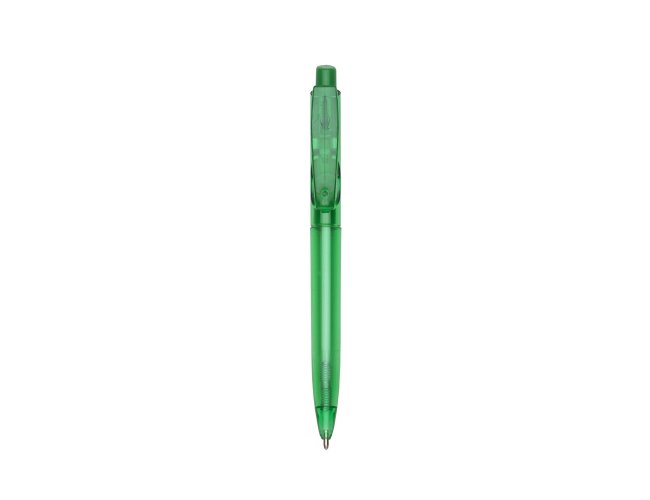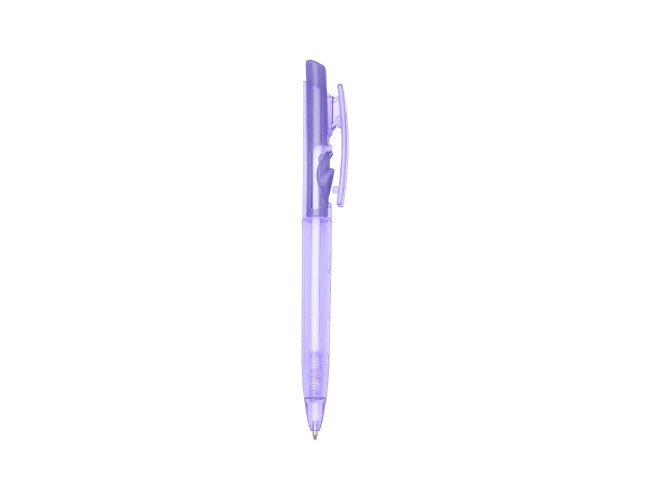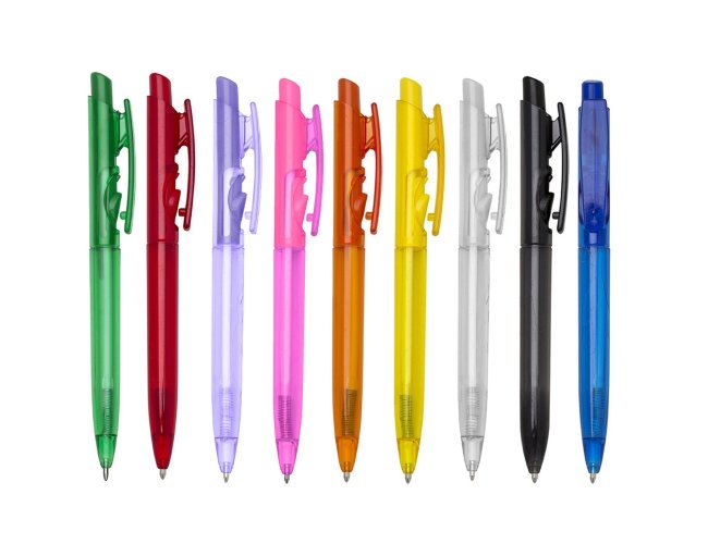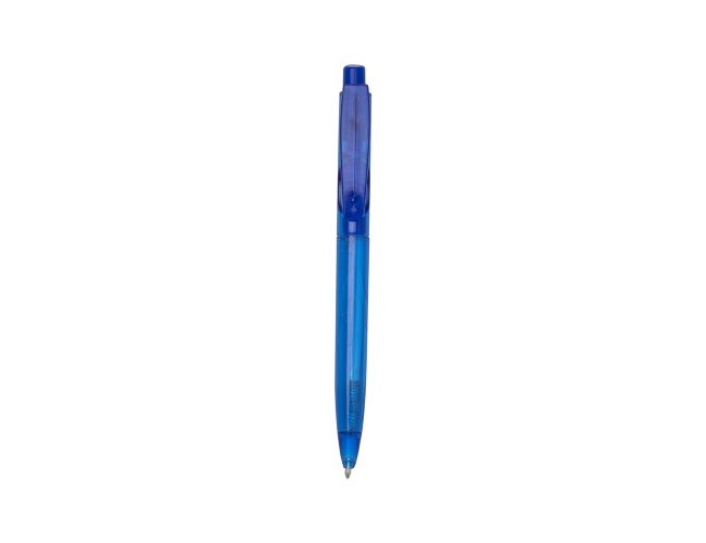 Caneta plástica com carga esferográfica azul 1.0mm e acionamento por clique.