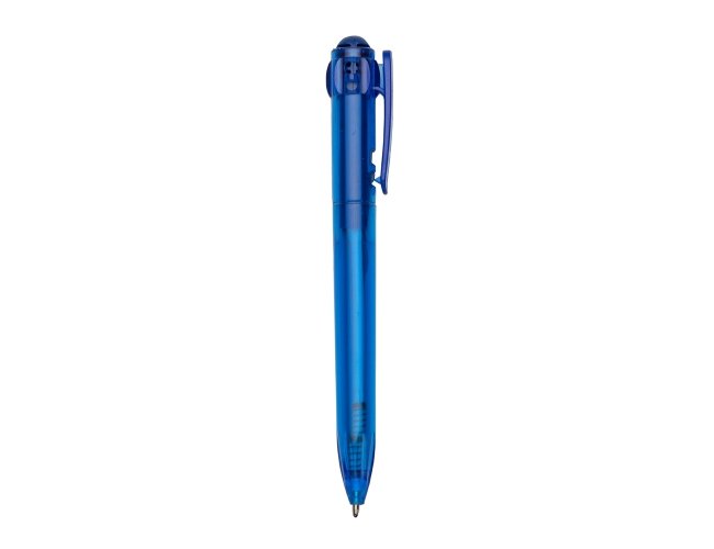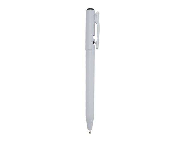 Caneta plástica com carga esferográfica azul 1.0 mm e acionamento por clique.