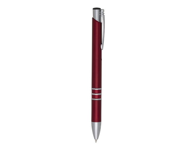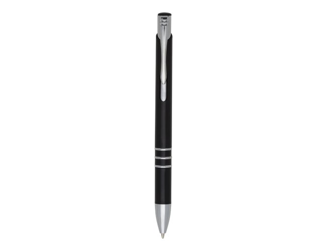Caneta plástica com carga esferográfica azul 1.0 mm e acionamento por clique.