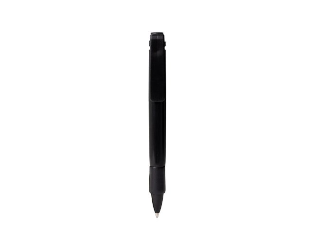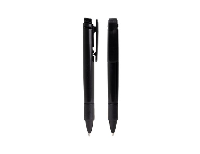 Caneta plástica com carga esferográfica azul 1.0mm e acionamento por clique.