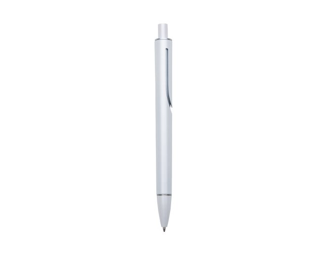 Caneta plástica com carga esferográfica azul 1.0 mm e acionamento por clique.