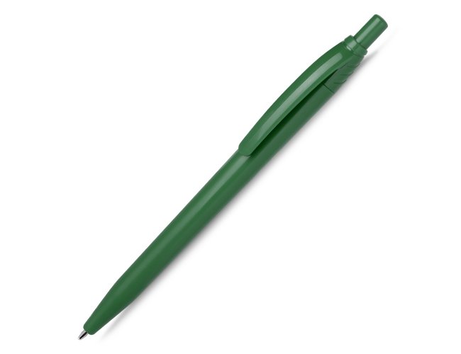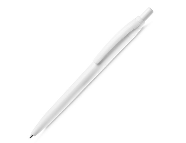 Caneta plástica com carga esferográfica azul 1.0mm e acionamento por clique.